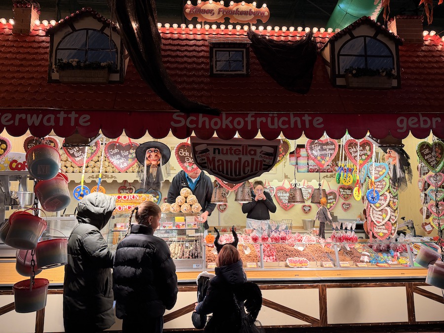 Für die Jüngsten drehte das Kinderkarussell ohne Pause seine Runden; davor hielten Eltern unter Schirmen die Smartphones bereit. Die Kinder liefen von Laden zu Laden und holten was Süßes.