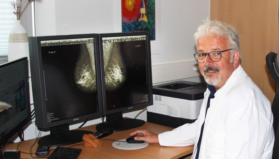 Die bei auffälligem Befund heute standardmäßig durchgeführte Biopsie (Gewebeentnahme) dient nicht nur der Bestimmung der Tumorart und des Gradings (der Wachstumsrate), sondern das entnommene Gewebe wird direkt genutzt, um Tests mit verschiedenen Medikamenten durchzuführen. Dabei wird ermittelt, ob der Tumor z. B. auf eine hormonelle Therapie anspricht. Eine überaus hilfreiche Erkenntnis, die für die Planung der medikamentösen Therapie genutzt wird. Dr. Aßmann betonte: „Treten später erneut Tumoren auf, die Metastasen des ursprünglichen Brustkrebses sein könnten, ist eine erneute Biopsie notwendig. Die Tumorzellen können sich verändert haben und es kommt durchaus vor, dass die Metastasen auf eine andere Medikation ansprechen als der ursprüngliche Tumor.“