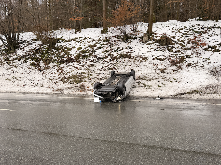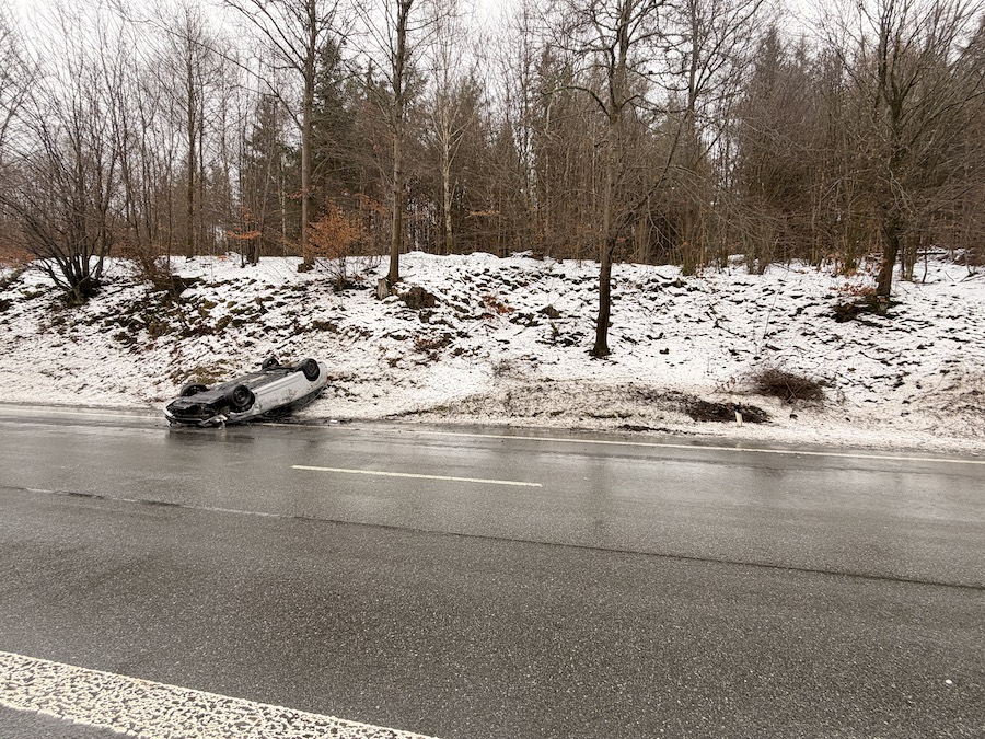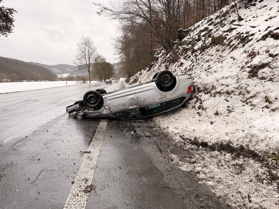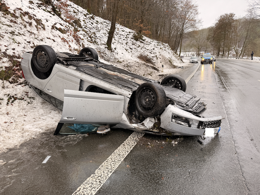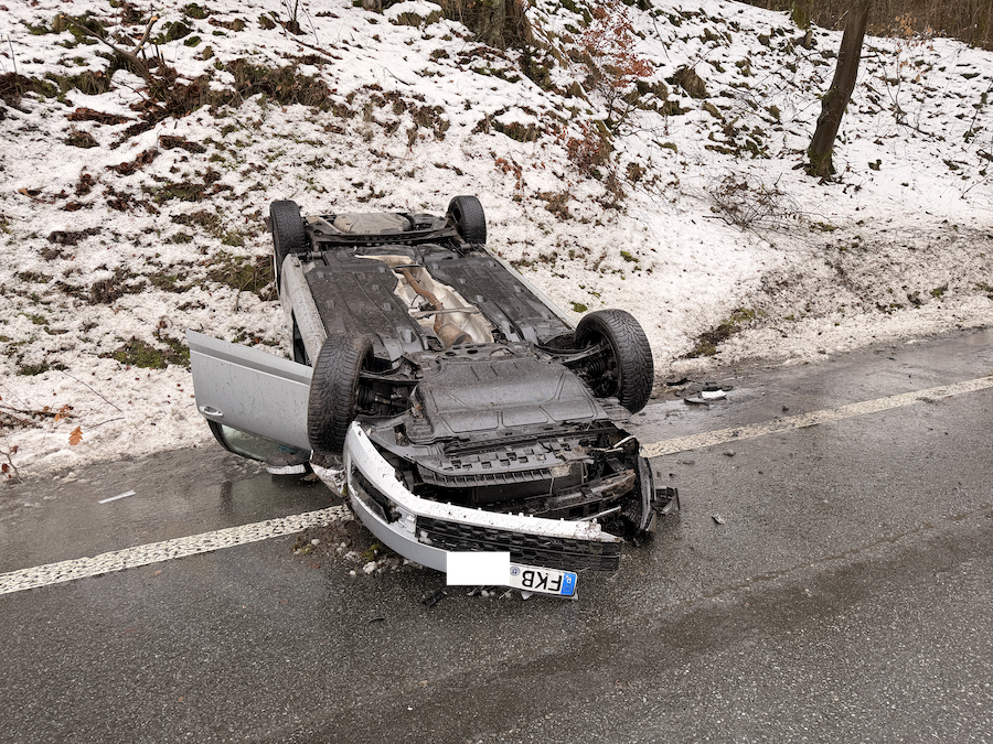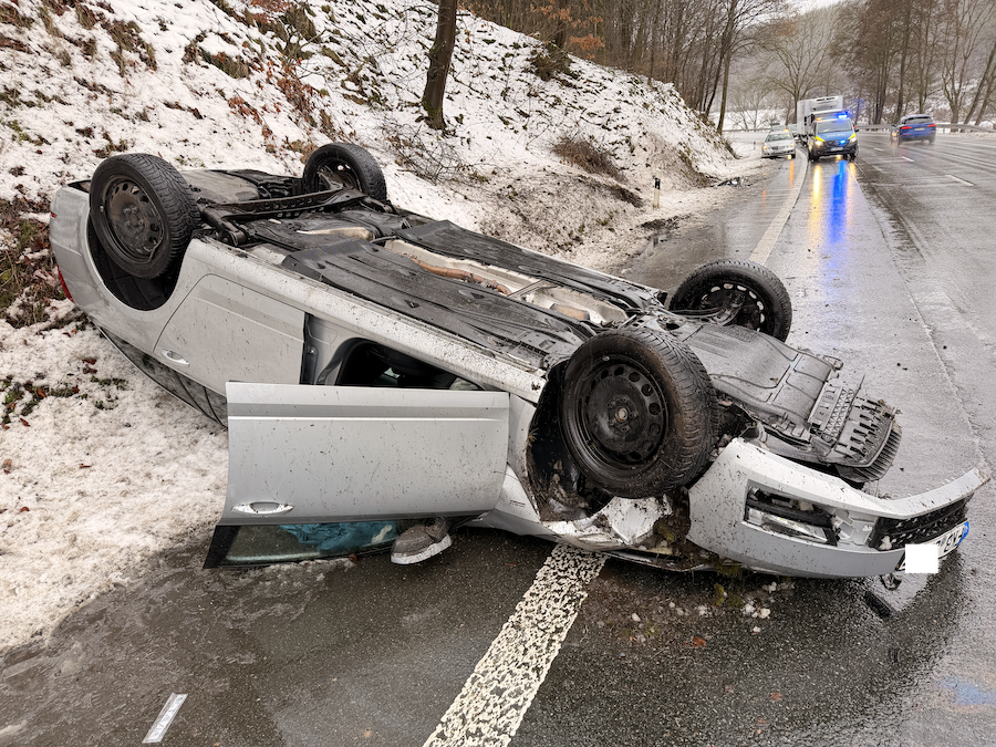 Der Pkw kam von der Fahrbahn ab, geriet in den Graben, überschlug sich einmal und blieb schließlich auf dem Dach liegen. Der Fahrer erlitt bei dem Unfall leichte Verletzungen. Er wurde nach der Erstversorgung vor Ort zur weiteren Behandlung in das Frankenberger Krankenhaus gebracht.