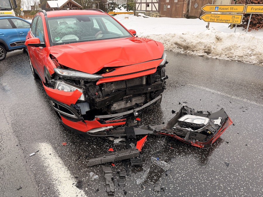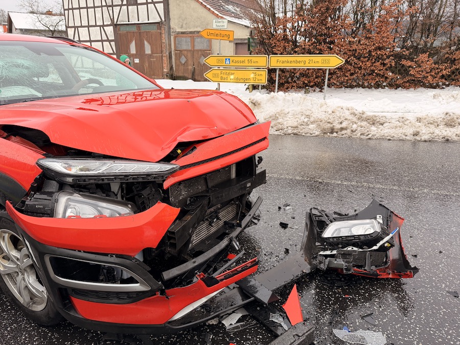 Der Unfall ereignete sich am Freitagnachmittag gegen 15.10 Uhr auf der Löhlbacher Straße. Eine 63-jährige Frau aus dem Edertal befuhr mit ihrem blauen Renault Captur die B 253 aus Richtung Löhlbach kommend und beabsichtigte, nach links in Richtung Hüddingen abzubiegen. Dabei missachtete sie jedoch den Vorrang des Gegenverkehrs.