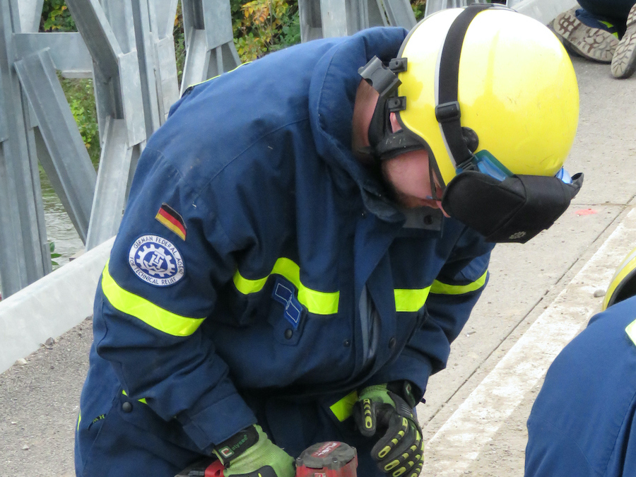 Ein Kranunternehmen hob die Brücke vom früheren Standort zum Demontageort aus, nachdem die Bodenplatten entnommen worden waren. Anschließend haben rund 25 THW-Einsatzkräfte diese wieder in ihre Einzelteile zerlegt. Unzählige Schrauben und Bolzen wurden gelöst, sodass sich die Brücke in handliche Stücke zerlegen ließ. Durchgeführt wurden die Arbeiten von den THW-Fachgruppen BrB aus Bad Kreuznach und Neustadt a. d. W.